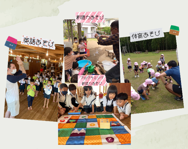 英語あそび、体育あそび、創造力あそび、プログラミングあそび! 充実のカリキュラム