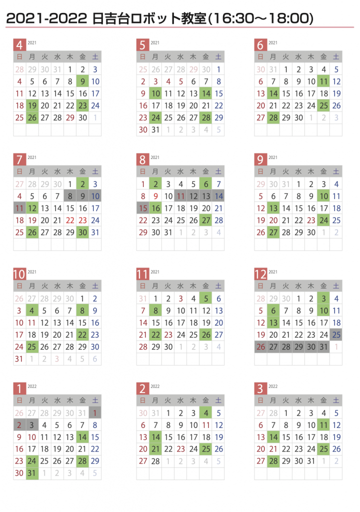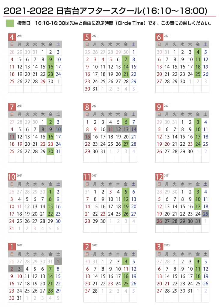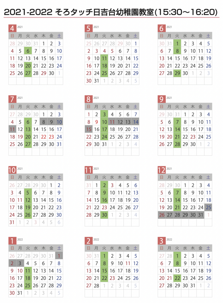 日吉台幼稚園の習い事の日程・料金をご案内します。